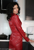 Mimi shows off her colour co-ordinated lingerie in the kitchen