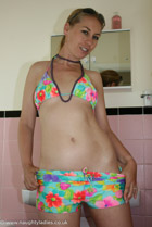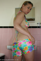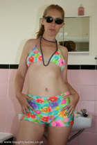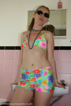 Claudia's been sunbathing, and her bikini is so bright she needs shades.....