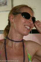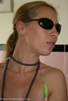 Claudia's been sunbathing, and her bikini is so bright she needs shades.....